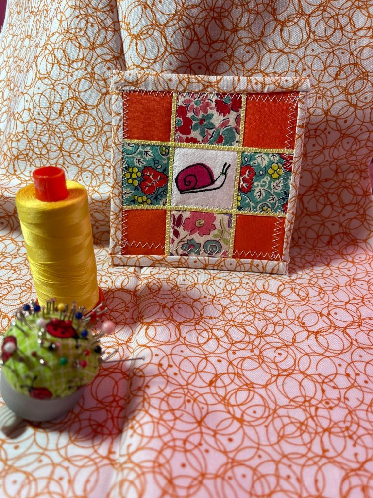 I then participated in the following Micro Mini Swap hosted by Berry Birdy and her daughter, Maranelle of .https://www.instagram.com/sewfoxymama/ The SAL and Swap were challenges to create teeny tiny items no bigger than 8” x 8”; anything from a mini quilt, pincushions, travel tag, needle book, mug rugs or more.