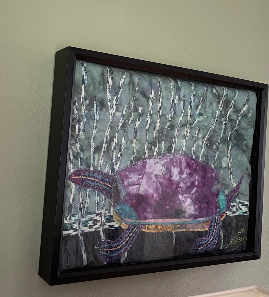 My favorite fabric collage is my Royal Turtle piece set in a Marsh.