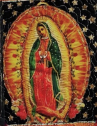 The Madonna of Transitions has made several appearances at art galleries in the Detroit Metro area. Completed in 2021, this art piece started with an 8-inch by 11-inch panel sets of the Madonna of the Seven Stars I had saved for many years. The Madonna has been represented in several art quilts I have created. For this one, I wanted to show her acceptance of all who face transitions whether it is a transition from adolescence to adulthood or from life to death; whether it is a transition of working to retirement or from in the closet to out, whether it is from addiction to sobriety or from illness to health.