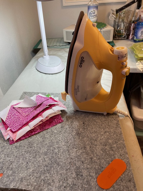 Before I started the project, I cleaned my Brother Dreamweaver’s bobbin case and switched out the Schmetz needle. I love using my Oliso Smart Iron and Oliso Wool Mat together to press my blocks flat! (Use my Missouri Start Quilt Company Affiliate Link to earn 20% off $50 or more. I used Hobbs Heirloom Premium Cotton Batting for the tulip table runner and a hotpad made from a leftover pinwheel block.