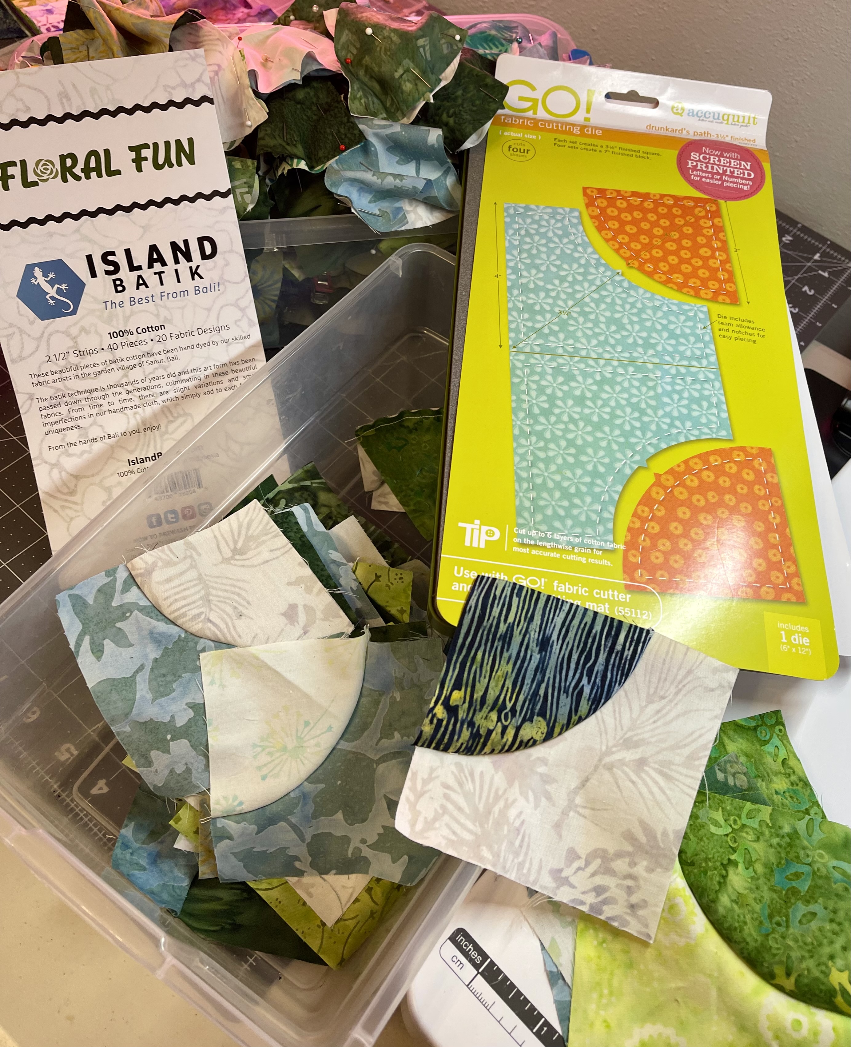 Cutting out curved quilt pieces by hand can be daunting. So I was pleased that Accuquilt had a variety of Drunkards Path dies for sale. I chose the 3.5-inch finish Drunkards Path die .