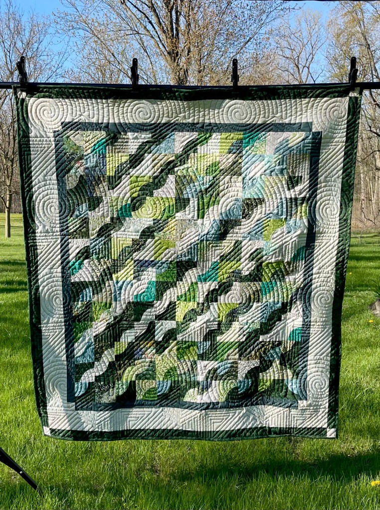 When I received the quilt back from Ruth, I was stunned by the lovely job. The back was the same gray as shown above and I am so glad about that decision.