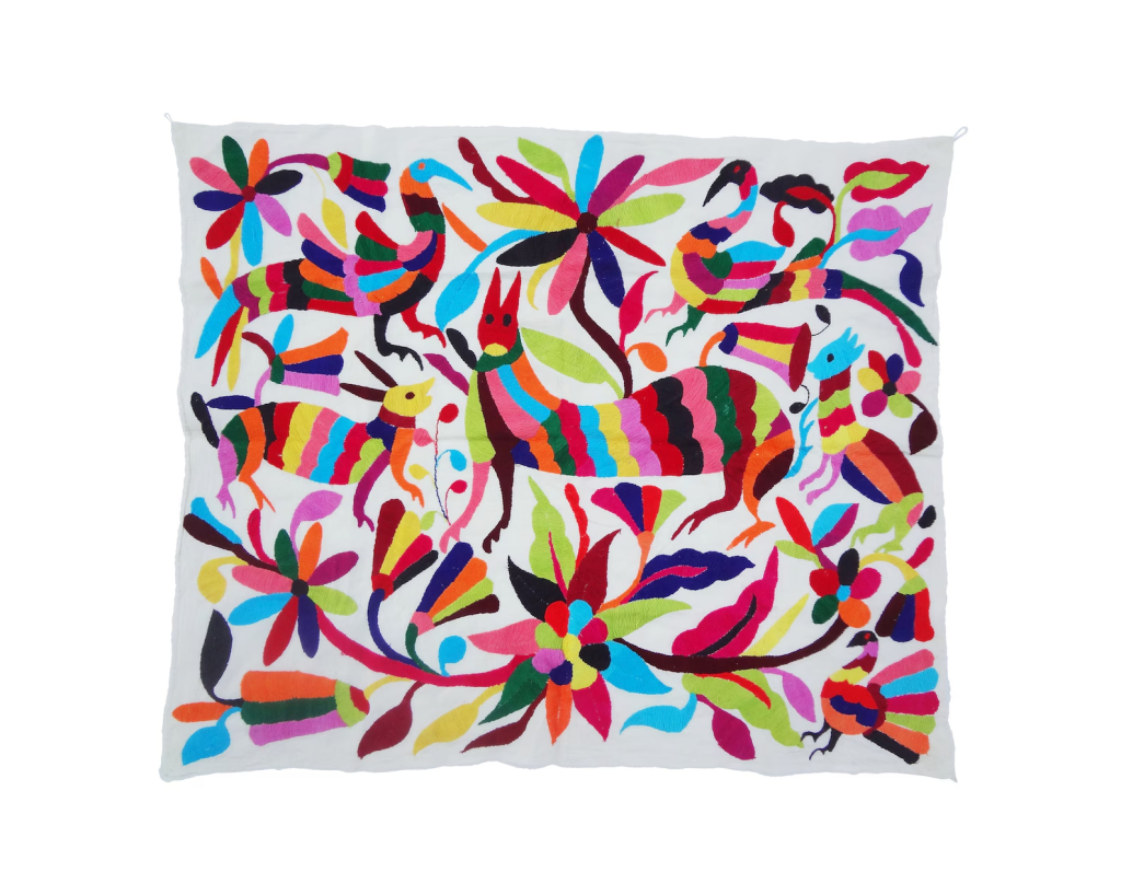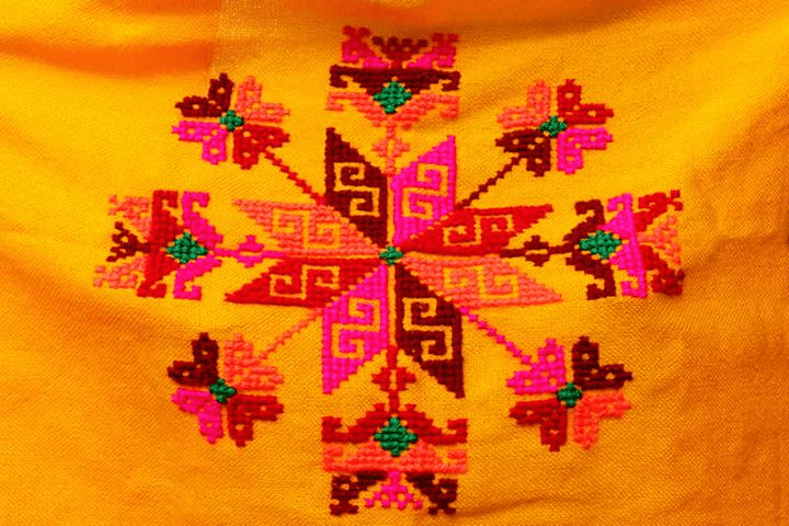 Otomi textiles, tenangos, take weeks or even years to embroider and are based on ancient cave paintings depicting birds and flowers. Symbols also include animals, abstract designs, people, and mythological creatures. Here is an embroidery tutorial for Otomi herringbone stitch.