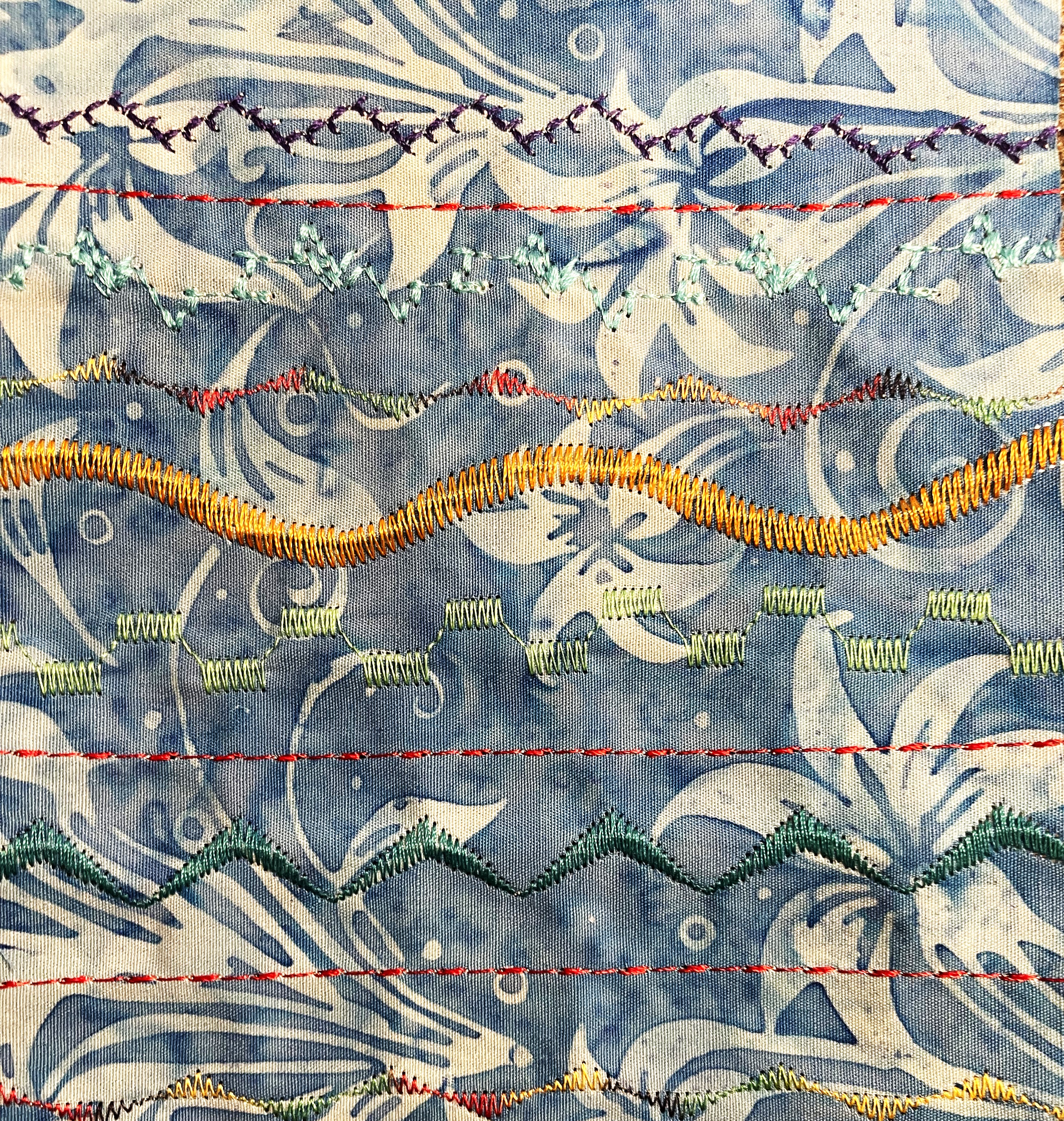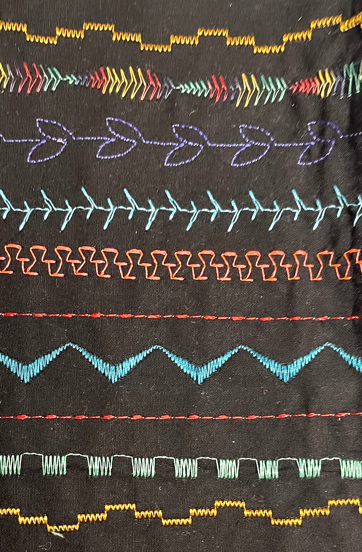 The library of stitches on my Brother Dreamweaver were also essentially as I created several blocks of sampler stiches which simulated the tapestry weaving of the Zapotec.