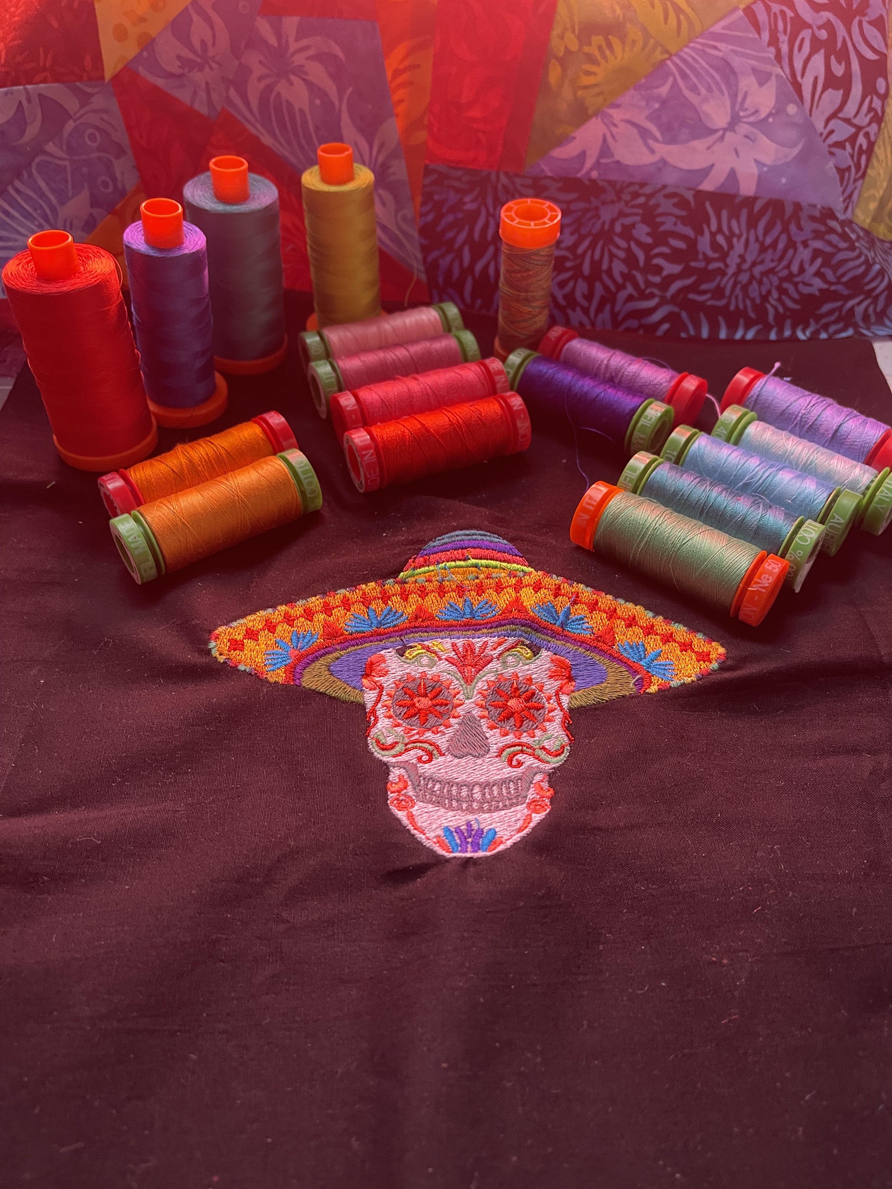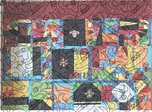 Ruth sent me four initial choices for quilting options. I had two favorites, but the sombrero and maracas motif was chosen after I investigated how those two items were meaningful to Mexican culture.