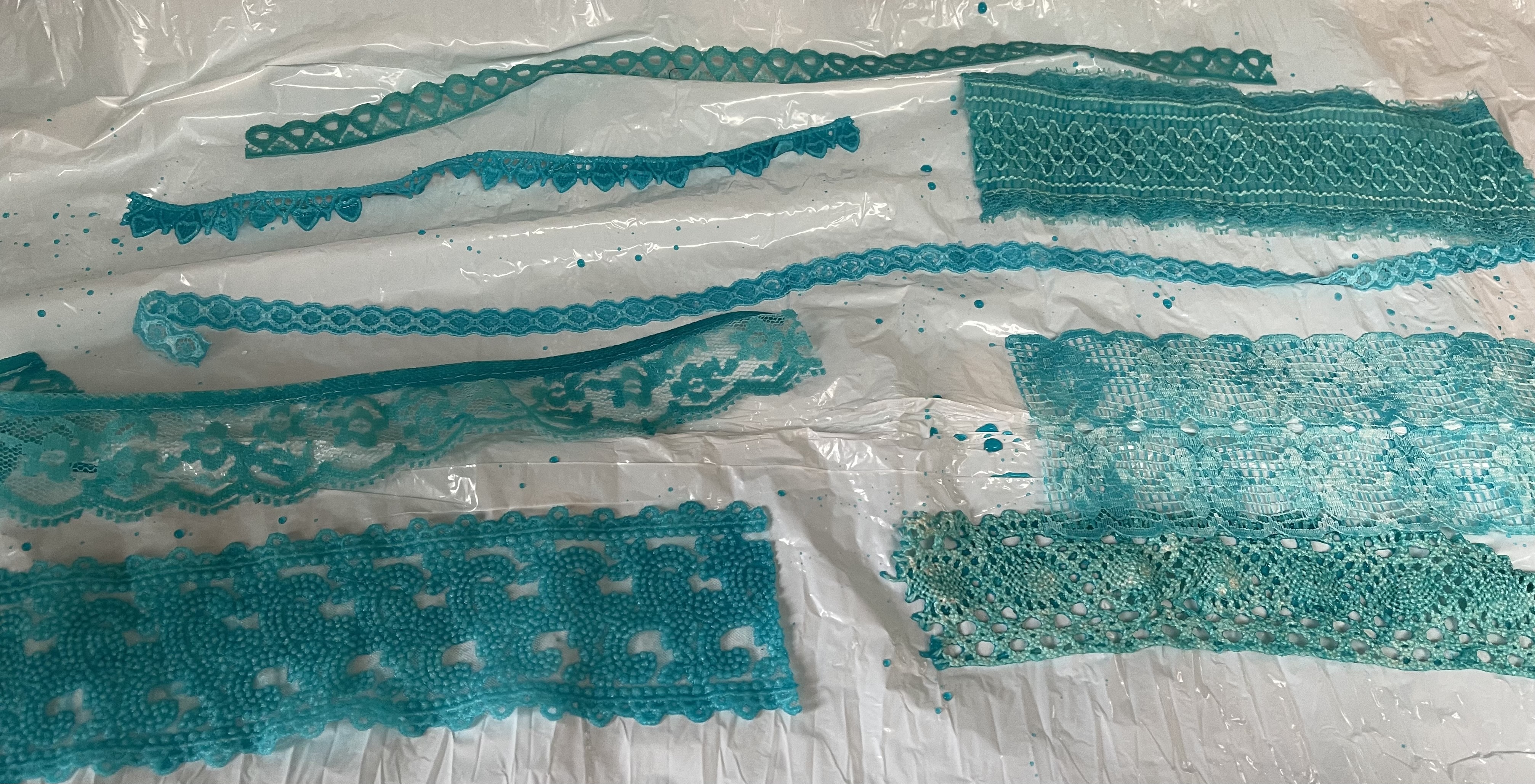 The only purchases for this quilt’s embellishments were a set of mini turquoise and a set of hispanic themed wooden buttons and some dye for pieces of vintage lace.