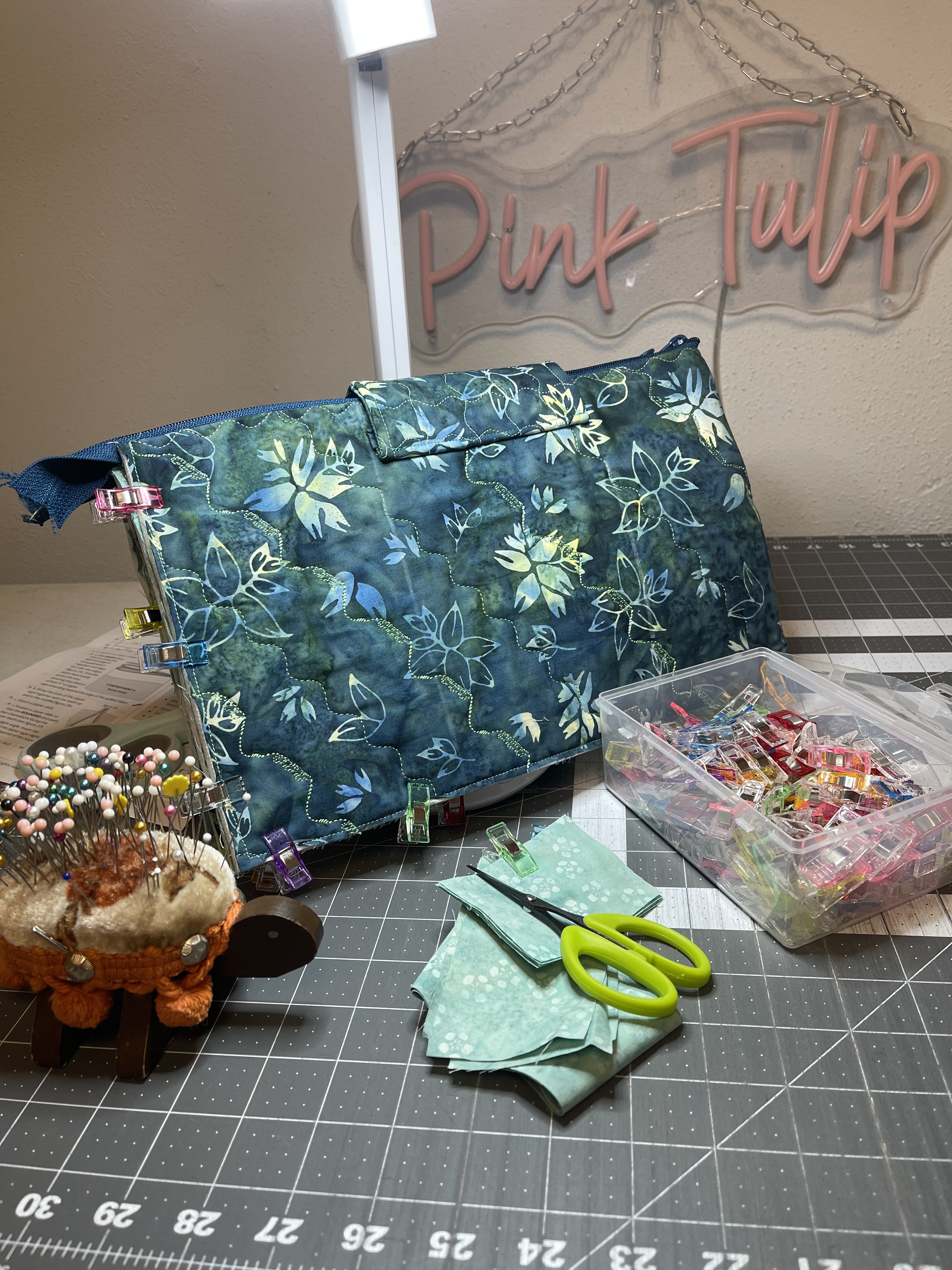 Before starting on the purse, I first watched the Night and Day Project Add-On Video. Annie also suggests reading the pattern all the way through both helpful in construction steps! Mini clips are great holders for the quilted pieces in the pattern which are backed with By Annie’s Soft and Stable which is washer and dryer safe!