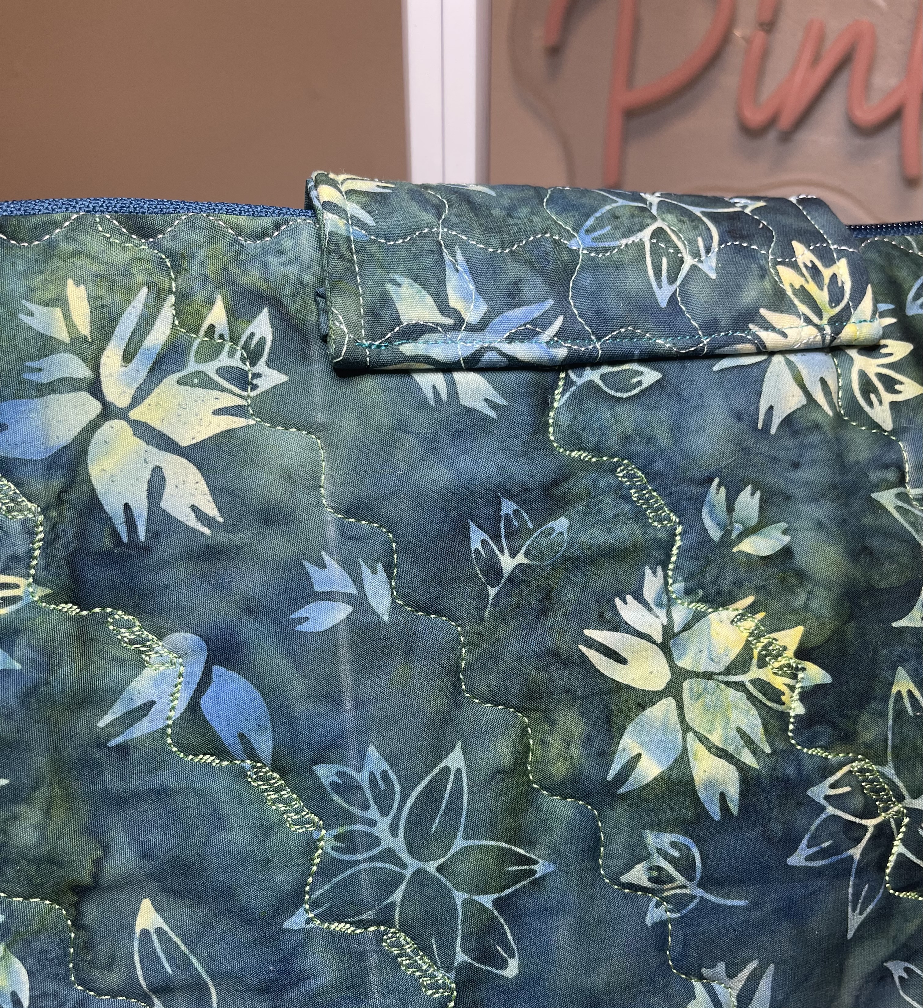I opted to do diagonal quilting on the purse with a wavy design. I also used a stitch on my Brother Dreamweaver which imitates Shashiko stitching for the tote exterior using different shades of Aurifil thread to simulate a wavy weave of plaid warp and weft threads.