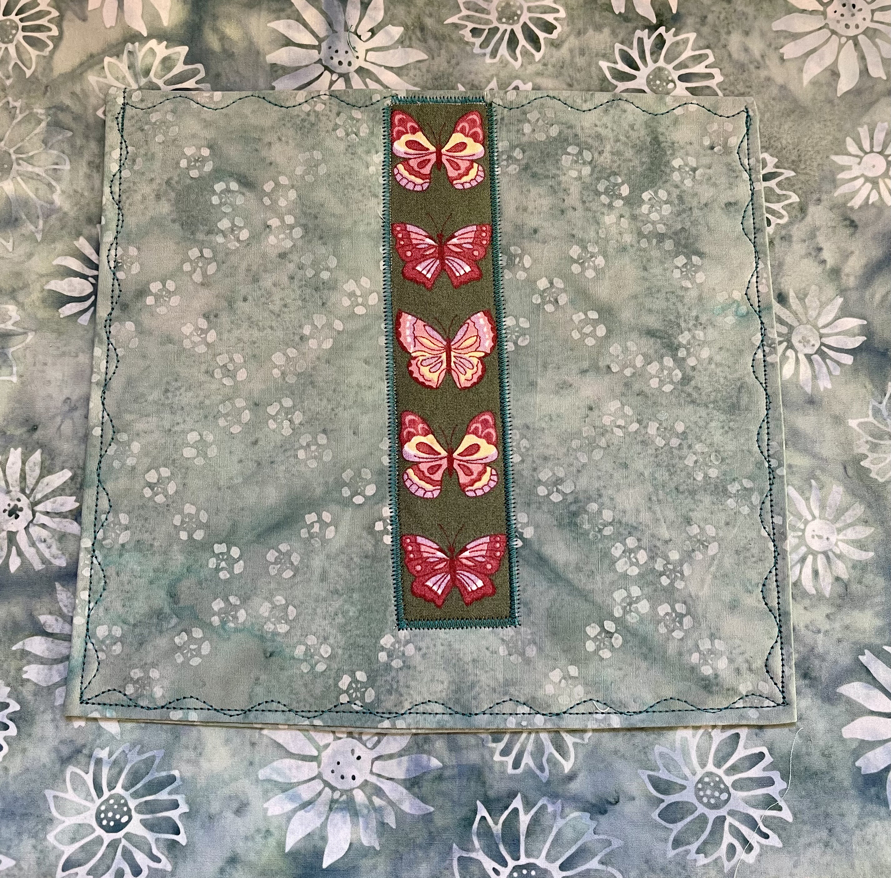 There were a few adjustments on the tote. I opted to add a mesh pocket and not do the recommended zippered welt pocket which was replaced with a simple basic pocket. For a pop of color, I did add a piece of butterfly ribbon to the front of the pocket. The decision to omit the welt pocket created the need to determine how the purse would be turned right side out after sewing the exterior and interior together. I opted to use the corner cutouts, and it worked out very well. The tote could be reversible as I added binding to those corner seams.