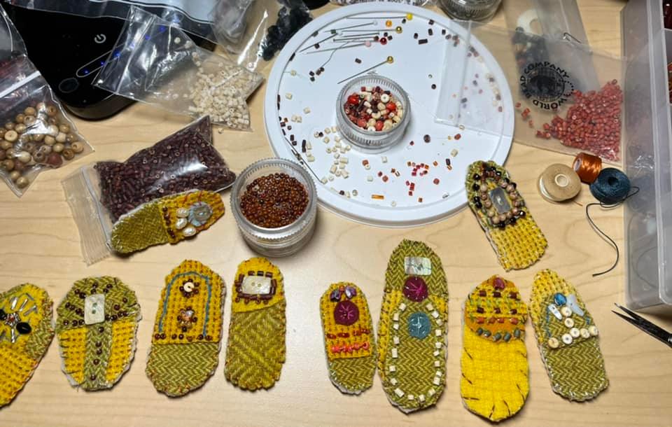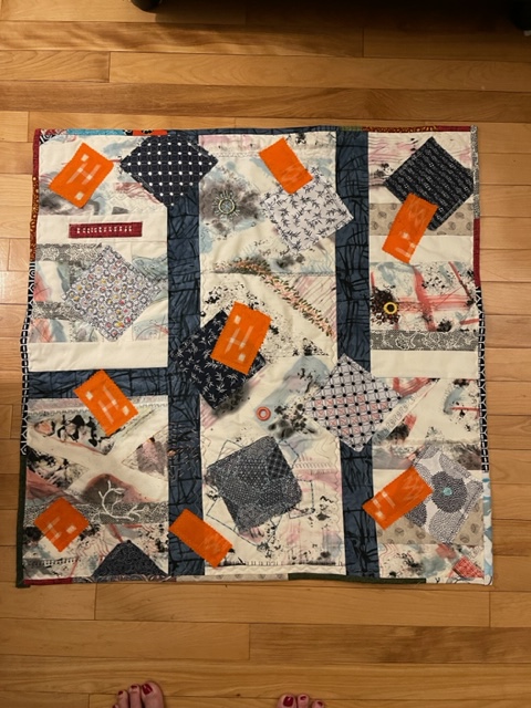 Buried Poem Quilt Mini Moccasin CreationBuried Poem Quilt Orange is the ColorGarden Gate Quilt featuring Yukata Cotton (Sold) Light of the Madonna Wall HangingBlue Moon QuiltGypsy at Rest Homage (Sold)Kyuushi Wall HangingYukata DetourMichigan SummerMicro Mini (Sold)3-inch Micro Mini with Dolphin ButtonOne Inch Square Composition (Sold)Modern Autumn (Sold)Snowed In Table Runner