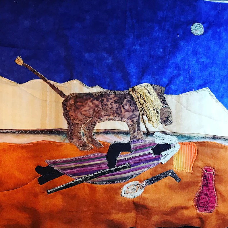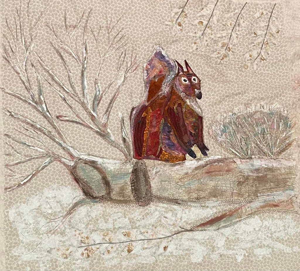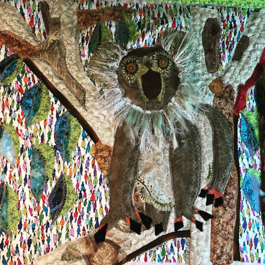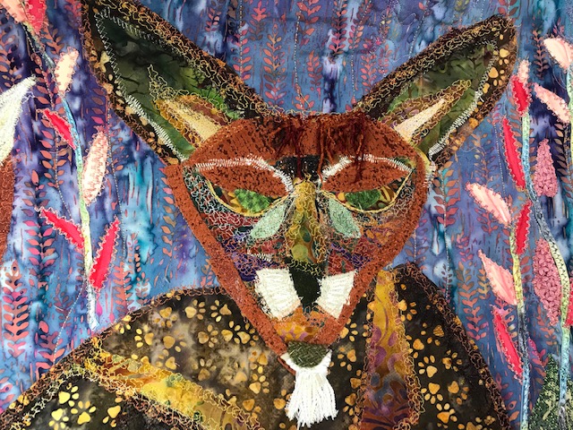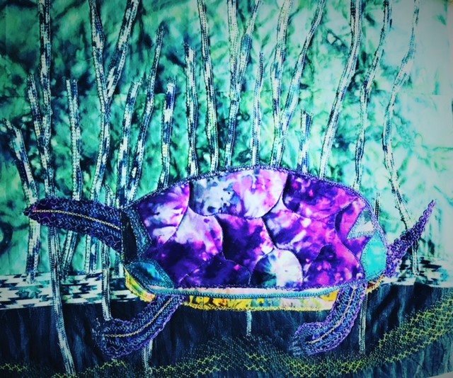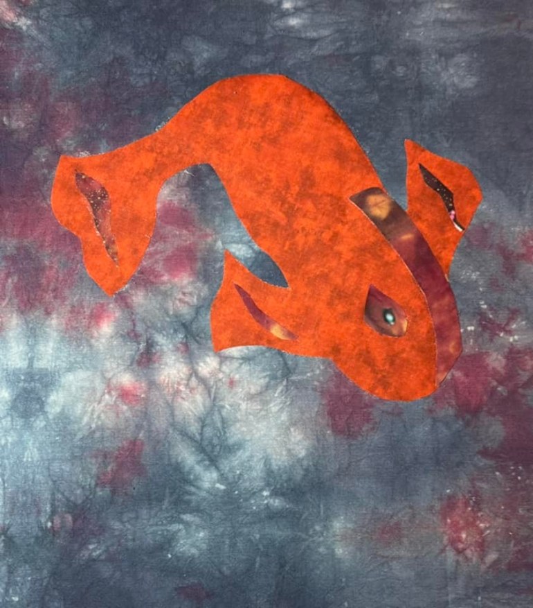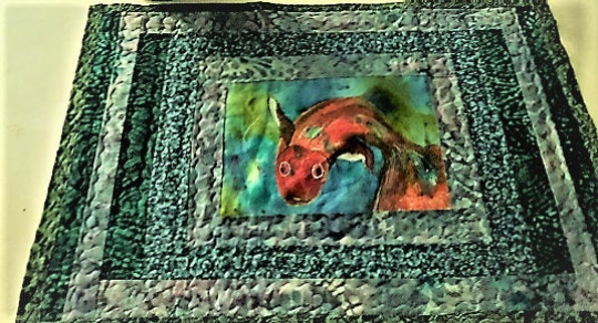 Buried Poem Quilt Humming Salmon Square DetailBuried Poem Quilt Companion PieceGood Morning Sunshine Quilt (Sold)Still Life Fabric CollageFox Lying in a Field Elephant Journey Wall HangingRoyal Turtle Fabric CollageKoala Wall HangingHand Painted Koi Table Runner (Sold)On the Move (SOLD during the Muskegon Museum of Art 95th Modern Artists show)PauseMoon Shadows, donated quiltVintage One Incher Micro MiniDonated Micro MiniWoodland Fairy Gnumerous Gnome Still Life X 3Quilt Hieroglyphics